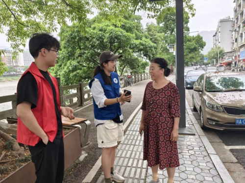 图 1 志愿者在街道调研群众对历史了解